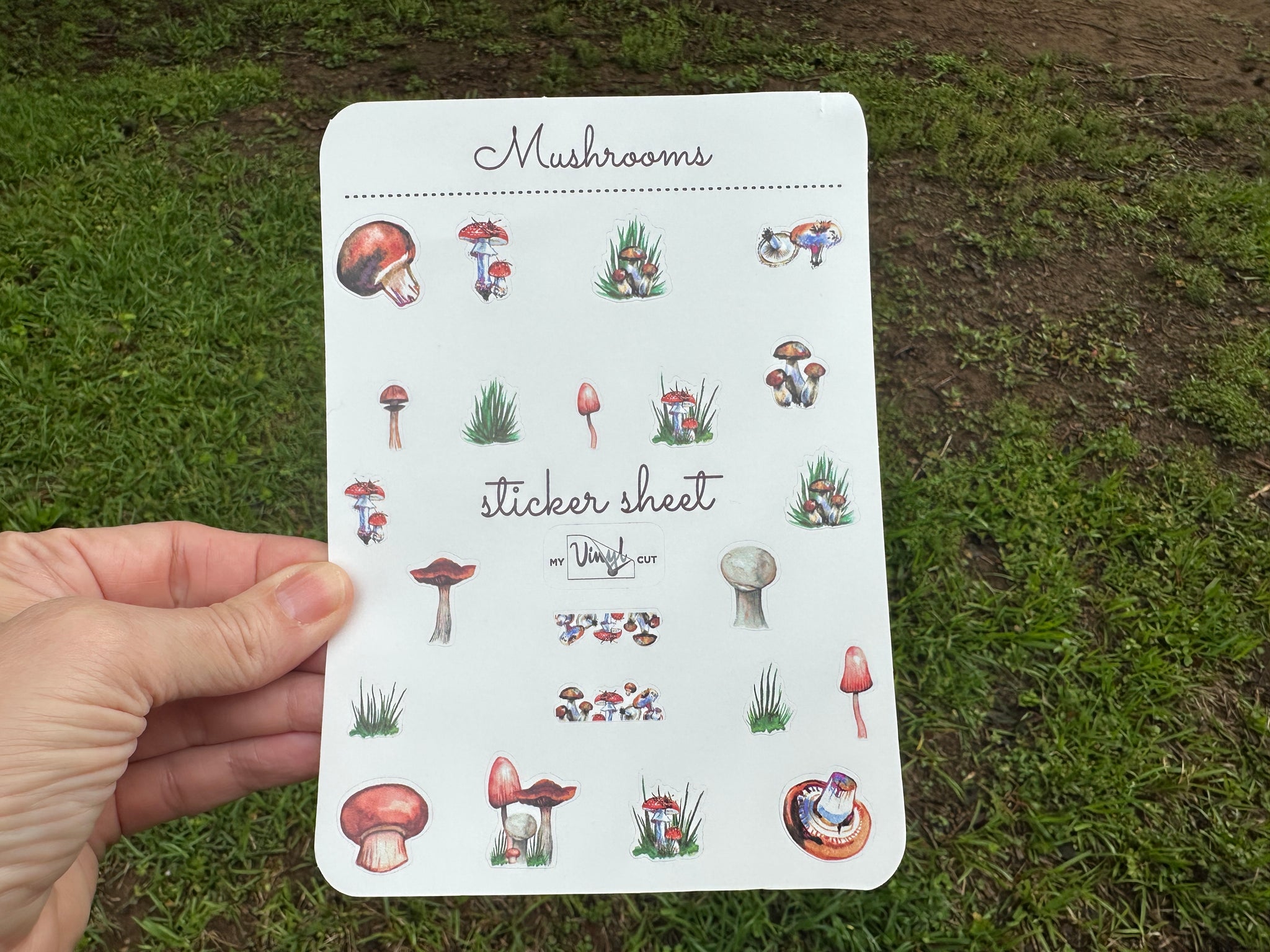 Sticker Sheet | Set #6 | planner stickers | Mushrooms | 5 x 7 inch sheet | permanent adhesive | waterproof ink