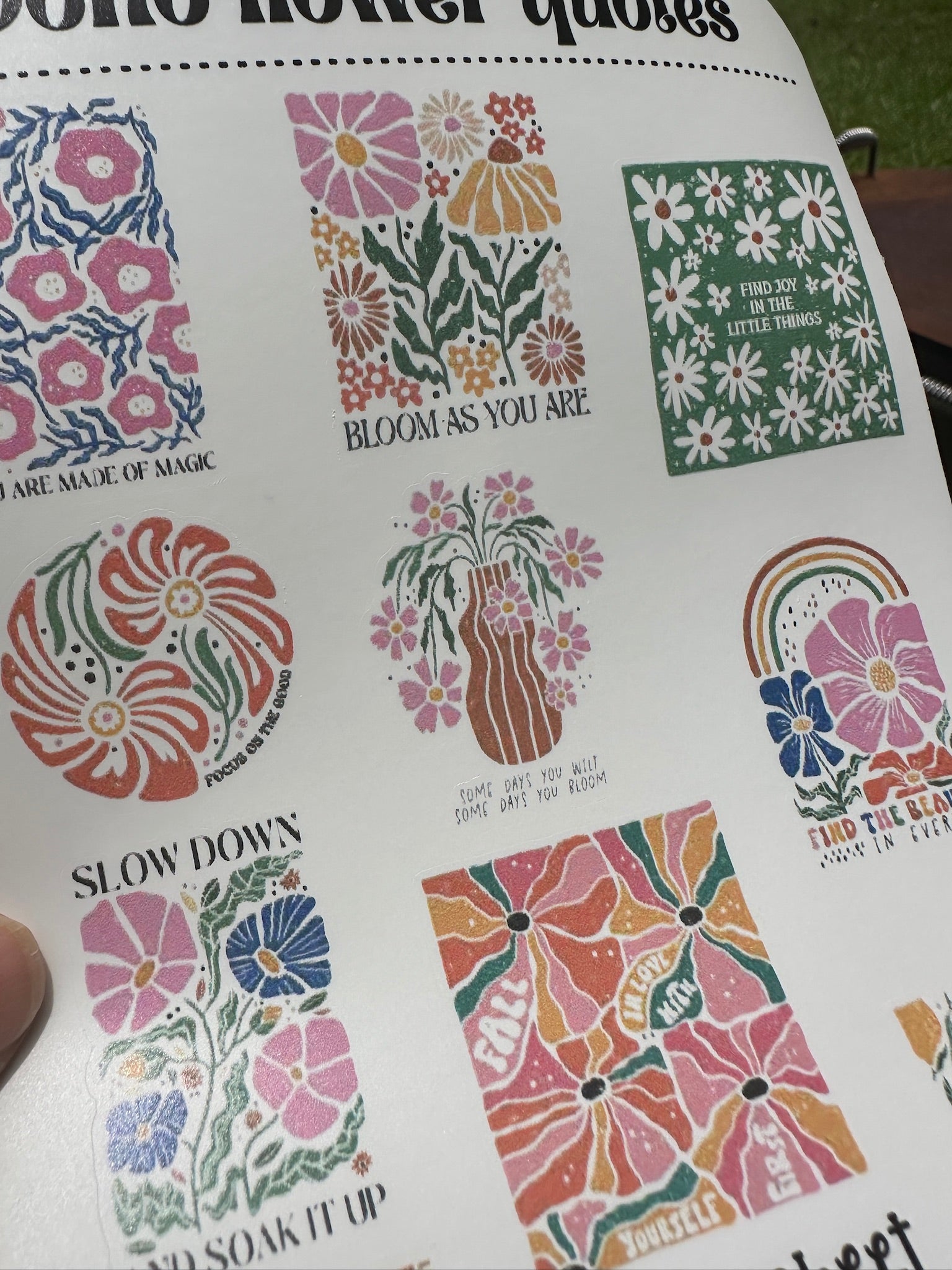 Sticker Sheet |  | Set of little planner stickers Boho Floral Quotes 5 X 7