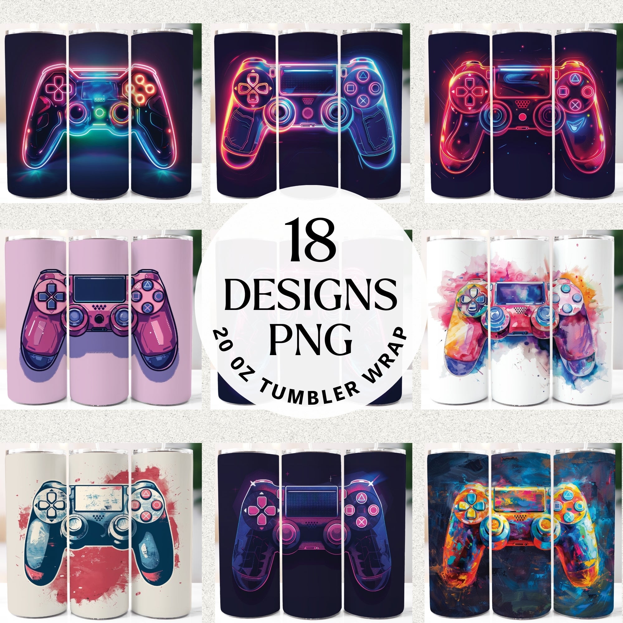 Gaming Controller 20 oz Tumbler Bundle Digital Download