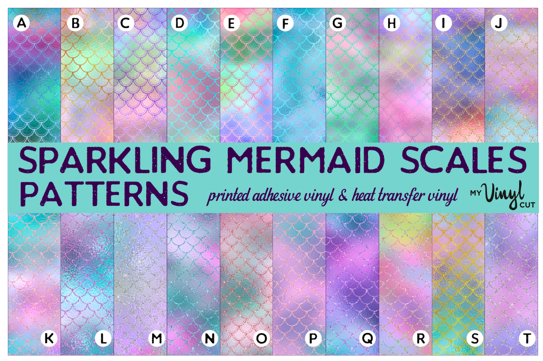 Sparkling Mermaid Patterns printed on waterslide film, self-adhesive vinyl or heat transfer vinyl