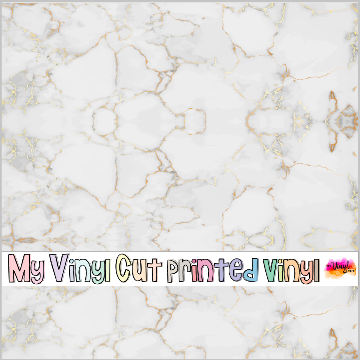 White and Gold Marble pattern printed on your choice of vinyl. It is originally a 12 x 4 inch design so I duplicated it so there are 3 on this one sheet so you may see a seam because the pattern was not seamless.