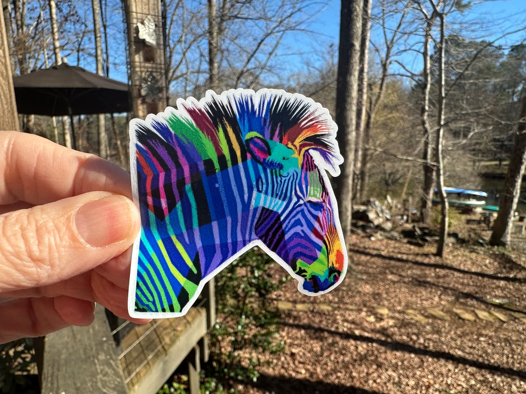 Sticker | 43C | Colorful Zebra | Waterproof Vinyl Sticker | White | Clear | Permanent | Removable | Window Cling | Glitter | Holographic