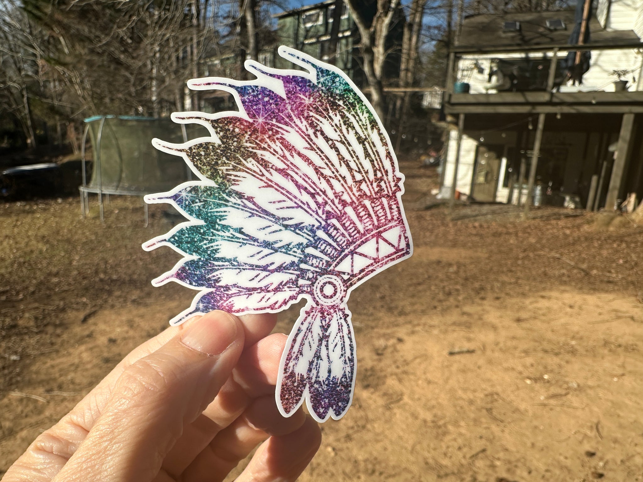 Watercolor Feather Headdress printed sticker or static cling